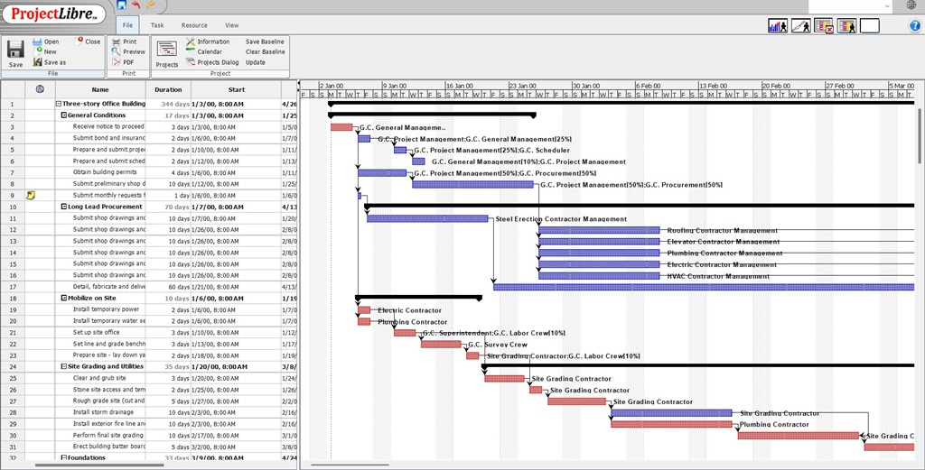 ProjectLibre is a free, open-source project management tool that launched in 2012 as an alternative to Microsoft Project. It’s built to help manage timelines, resources, and tasks and it’s been adopted by over 5 million users in more than 200 countries. Civil engineers often use ProjectLibre to schedule construction activities, assign labor and materials, and monitor progress on complex jobs. It includes essential features like Gantt charts, critical path analysis, and baseline tracking, which are key for keeping construction projects on track. Whether it’s a small road repair or a large-scale housing development, ProjectLibre helps teams stay organized, on schedule, and within budget.